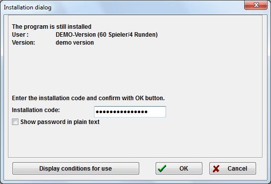 • Copy the installation code you have received by mail into the field "Installation Code" and click button "OK".